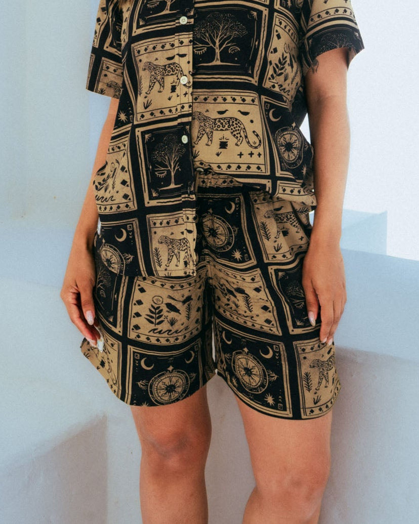 Terms and conditions applyUna prenda que narra historias a través de sus estampados. Este short en rayón liviano es parte de nuestro set Orígenes, una colección que celebra la conexión con la naturaleza, los símbolos y los ritmos del trópico.