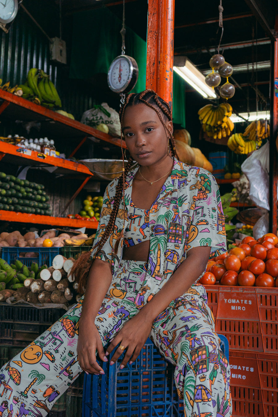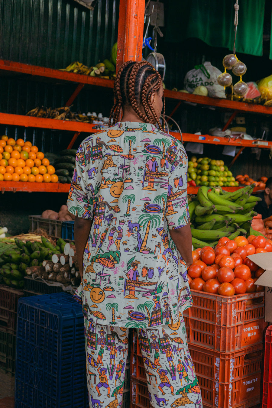 Camisa Casa del Ritmo: ligera, fresca y con caída soñada para looks de día o de noche. Tejido de rayón suave y respirable con movimiento fluido. Fit relajado tipo resort, no ajusta y permite total comodidad. Cuello cubano, manga corta y abotonadura frontal para usar abierta sobre top o cerrada. Estampado Joyas 2 Casa del Ritmo: vibra tropical con toques gráficos. Largo a la cadera: úsala por fuera, fajada o anudada al frente. Combínala con el pantalón o short a juego, sobre bikini o con denim. Talla habitual para un calce suelto. Cuidado: lavado suave en agua fría, no blanqueador, secar a la sombra y planchar por el revés a baja temperatura. Lista para bailar, viajar y vivir el trópico todos los días.