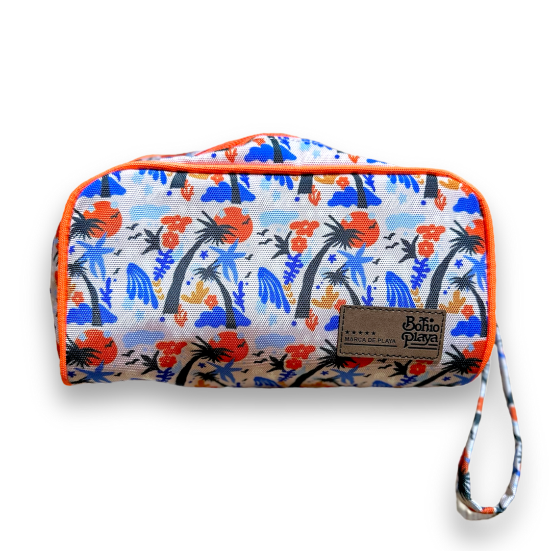 Nuestra cosmetiquera eco amigable es el complemento ideal para llevar tus artículos de cuidado personal y maquillaje. Diseñada con un estampado vibrante y detalles funcionales, combina estilo y practicidad.